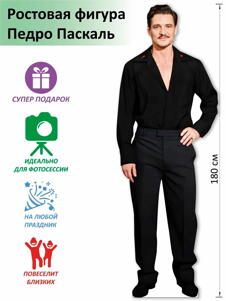 Ростовая фигура Педро Паскаля 4 - это уникальное украшение для организации праздников, которое станет отличным дополнением к любому торжеству.