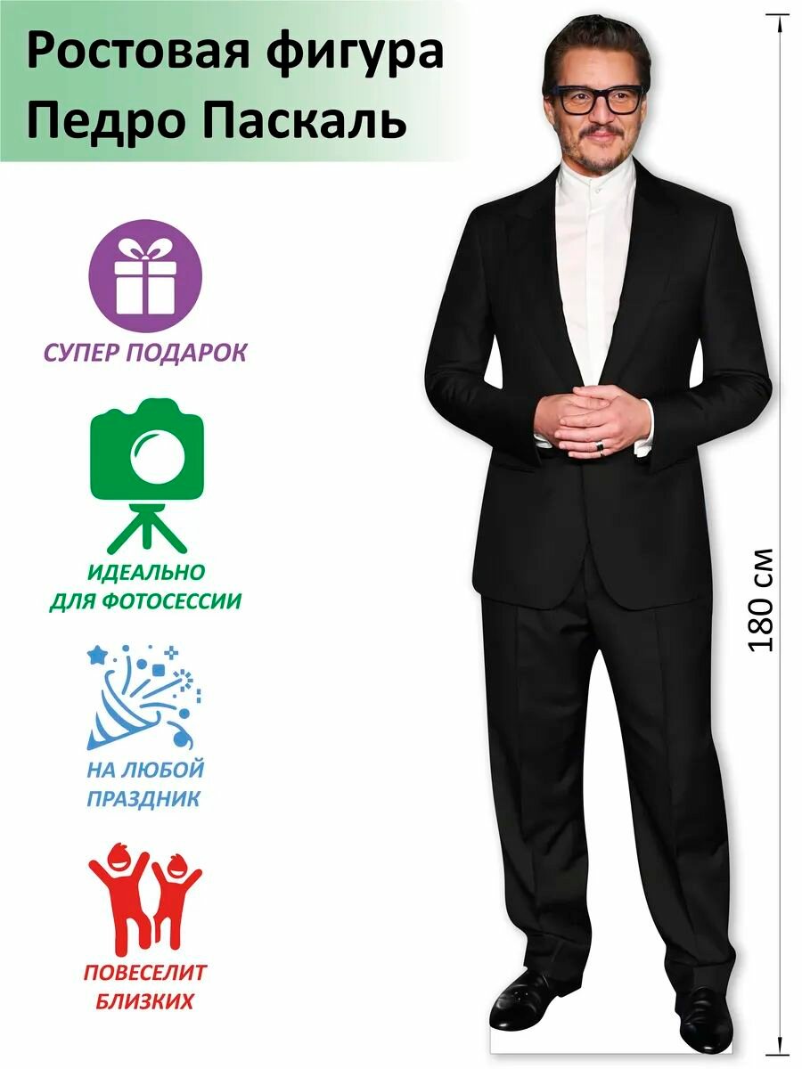 Ростовая фигура Педро Паскаля 2 - это уникальный и оригинальный подарок для любителей кино и музыки. Фигура выполнена в полный рост, достигающий 180 см, и имеет ширину 65 см, что позволяет разместить ее в любом помещении.