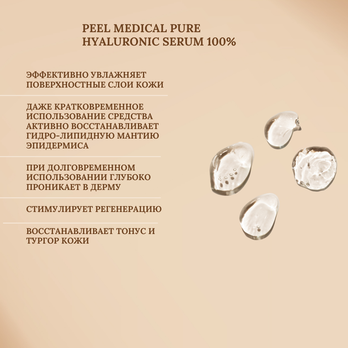 Продукт не содержит вредных добавок, что делает его безопасным для регулярного использования. Насладитесь ухоженной и окрепшей кожей с сывороткой с гиалуроновой кислотой от Peel Medical. Позаботьтесь о себе и подарите своей коже необходимо увлажнение и заботу.