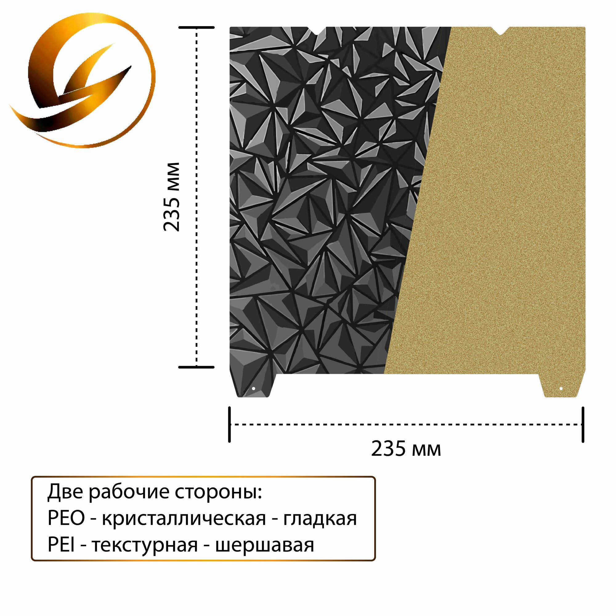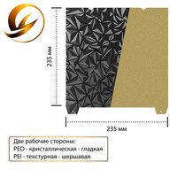 С этим Магнитным ковриком PEI-PEO 235x235 мм ваши модели будут крепко держаться во время печати и легко сниматься по завершении, а его термостойкость и долговечность обеспечат комфортную работу с любыми материалами!