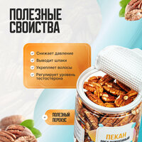 — Пекан (сырой, очищенный, натуральный) в стильных банках по 450 грамм. — Экзотический орех пекан обладает ярким ореховым вкусом без горечи со сладковатыми нотками. Орех пекан также отлично сочетается с сухофруктами и другими орехами. — Порадуй себя только отборным орехом в удобной, стильной баночке, которую так приятно держать в руках или поставить на рабочий стол в офисе. Коллеги будут в восторге! — Удобная упаковка в банке Easy Open! Алюминиевая крышка обеспечивает герметичность и сохраняет аромат ореха. Пластиковая крышка для удобного хранения после вскрытия. — Яркие эмоции от здорового перекуса Вам обеспечены!