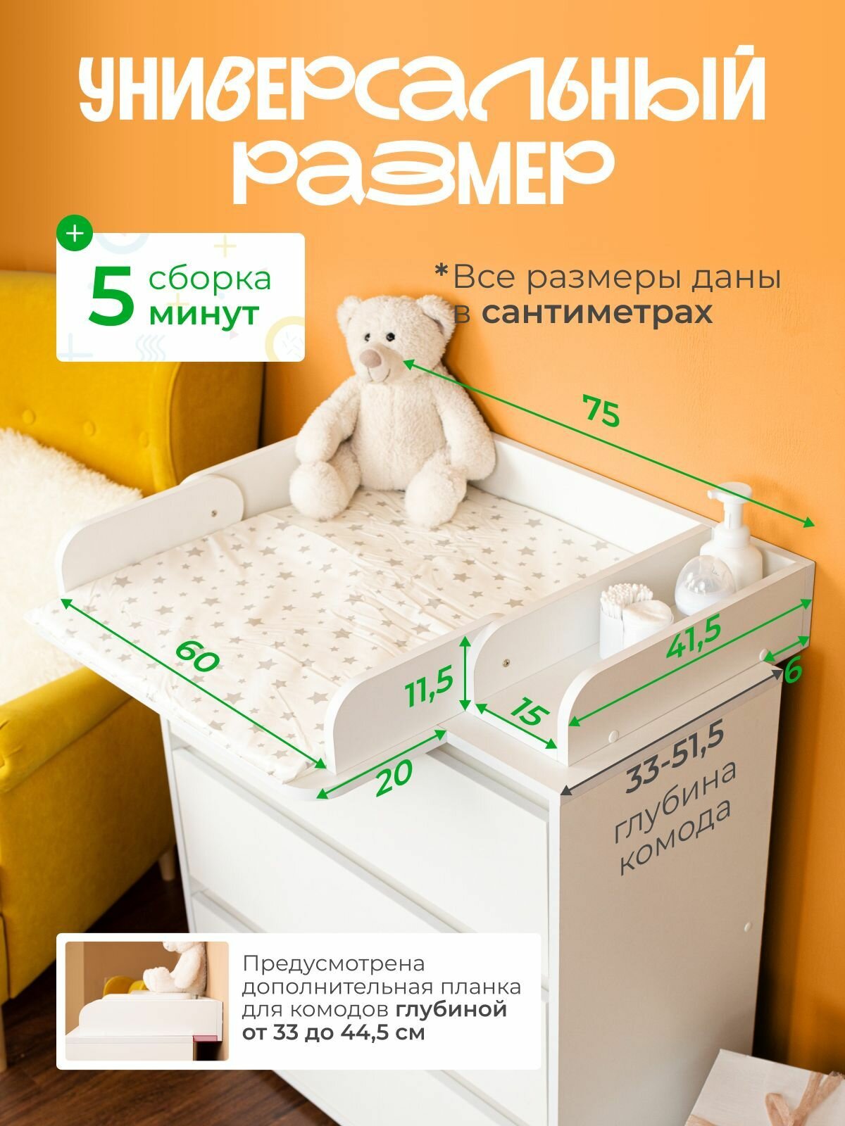 Купить Пеленальная доска на комод универсальная съемная складная с дополнительным отсеком с доставкой по всей России.