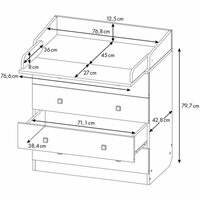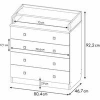 Вместительные выдвижные ящики комода шириной 80 см с системой плавного закрытия позволят удобно хранить все детские принадлежности. Когда малыш вырастает из возраста пеленания, поверхность может быть снята, тогда комод приобретет классический вид.