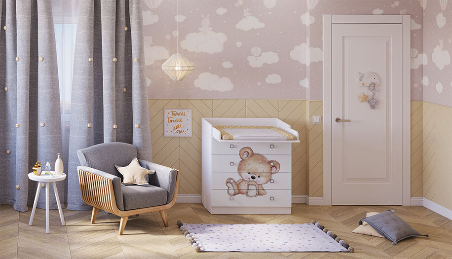 В комоде удобно хранить все детские принадлежности: детские вещи, игрушки, постельное белье, подгузники, крема, присыпки.