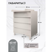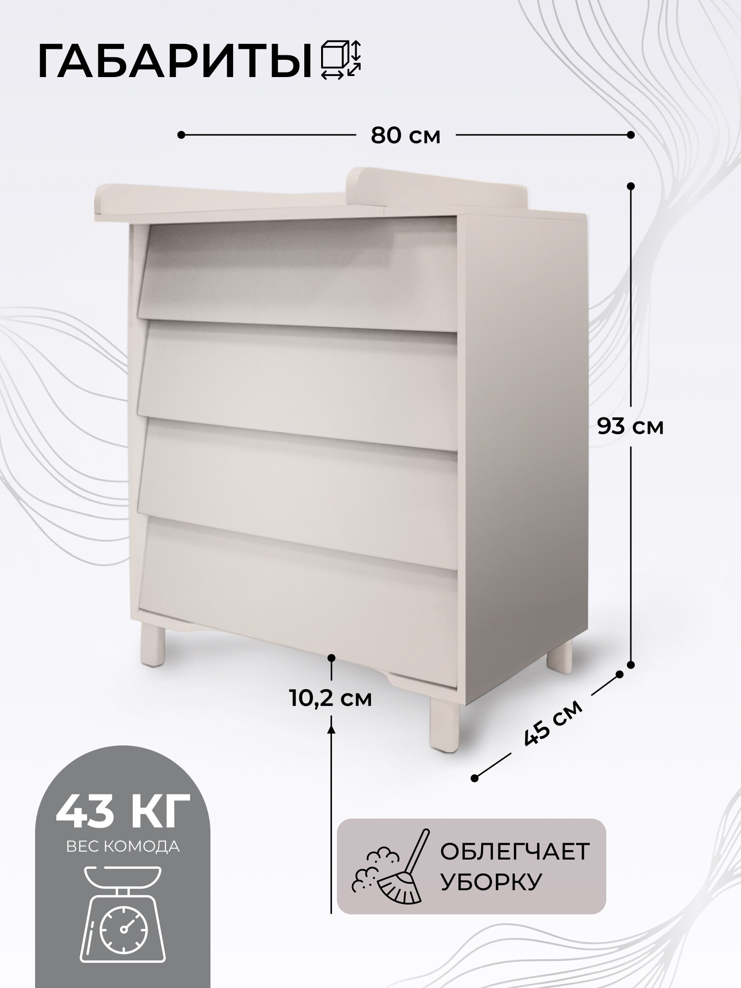 Стильный пеленальный комод Sweet Baby Dante станет отличным помощником для родителей в уходе за малышом. Комод выполнен в скандинавском стиле и отлично впишется в любой интерьер. - комод для пеленания Sweet Baby Dante выполнен из качественных материалов. - стильные наклонные фасады не только украсят интерьер комнаты, но и удобны в использовании - 4 вместительных ящика на шариковых направвляющих способны выдержать большую нагрузку - бортик для пеленания – съемный, благодаря чему вы сможете использовать комод, как классический, когда ваш ребенок подрастет - бортик/пеленатор реверсивный: можно установить как по краям, так и по центру- разместите его так, как вам удобно Внешние габариты (ДхШхВ) : 45х80х93 см Материалы: ЛДСП, ДВП, береза, кромкооблицовочный материал ПВХ, мебельная фурнитура Размер пеленальной площади: 630х640 мм Вес с упаковкой: 45 кг Вес без упаковки: 43 кг