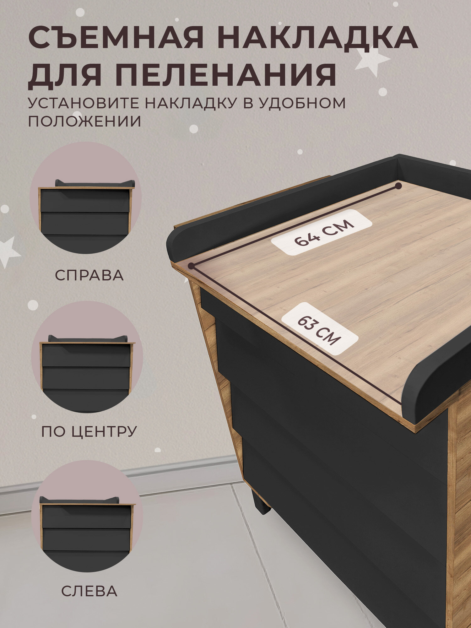 - бортик для пеленания – съемный, благодаря чему вы сможете использовать комод, как классический, когда ваш ребенок подрастет