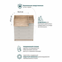В комоде используется пеленальный столик с простым и надежным, скрытым механизмом раскладывания. Есть отделение рядом с пеленальным столиком для средств по уходу за малышом в быстром доступе.