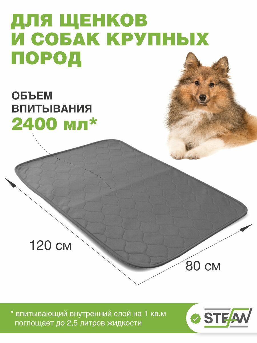 Пелёнка STEFAN (Штефан), премиум, впитывающая для собак, многоразовая для животных, серая 80х120см, WP-801201