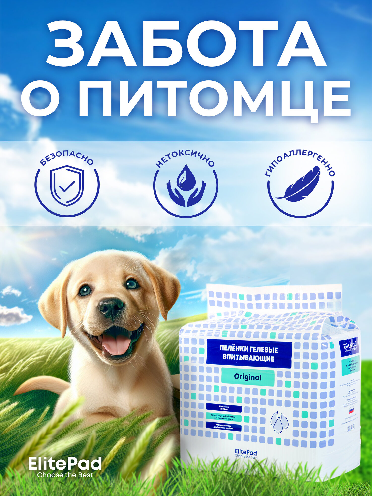 ELITEPAD Пелёнки одноразовые, гелевые «Original», 60х90см, 40 шт/уп: сравнение цен, характеристики, фото, актуальное наличие и цены.