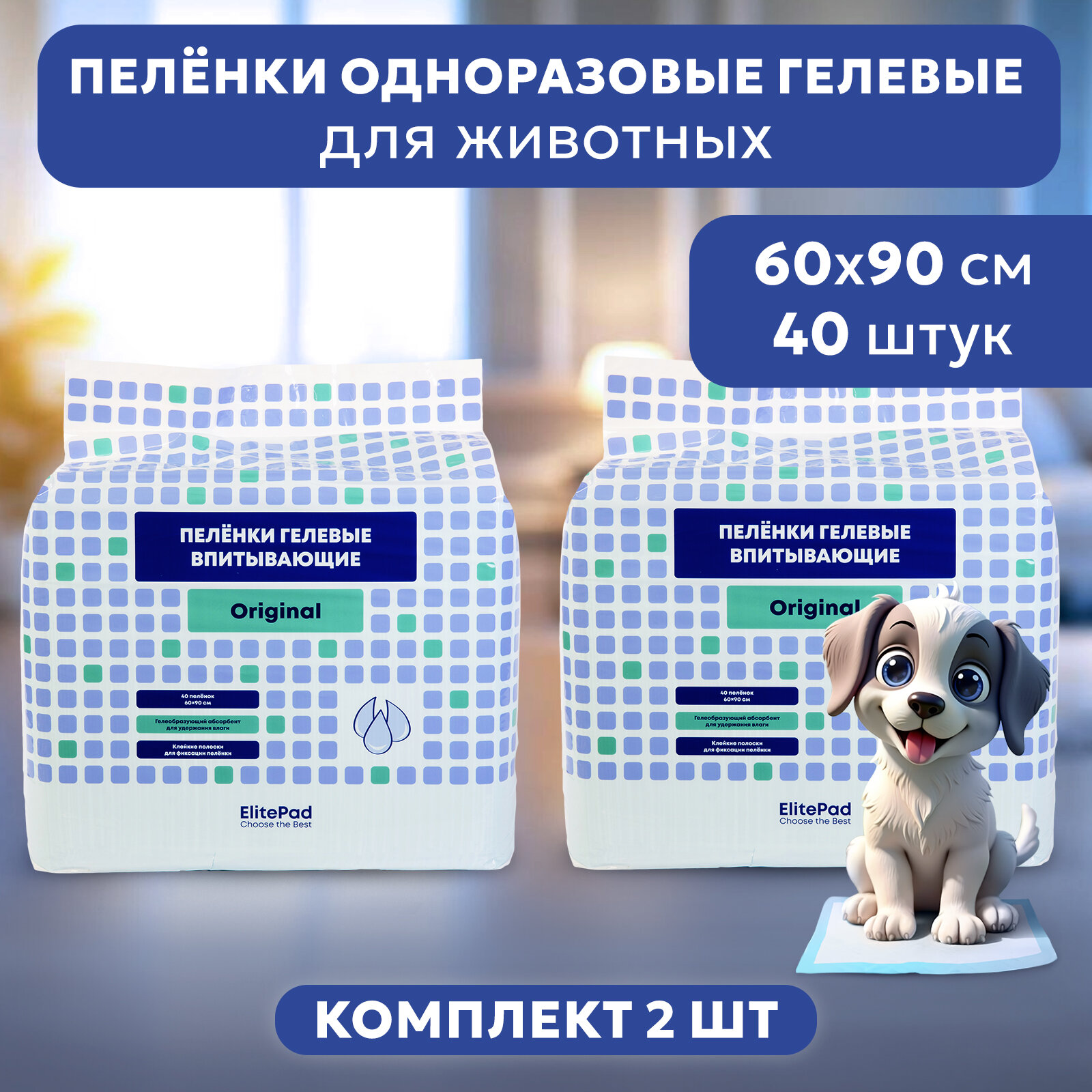 Купить ELITEPAD Пелёнки одноразовые, гелевые «Original», 60х90см, 40 шт/уп КОМПЛЕКТх2шт с доставкой по всей России.