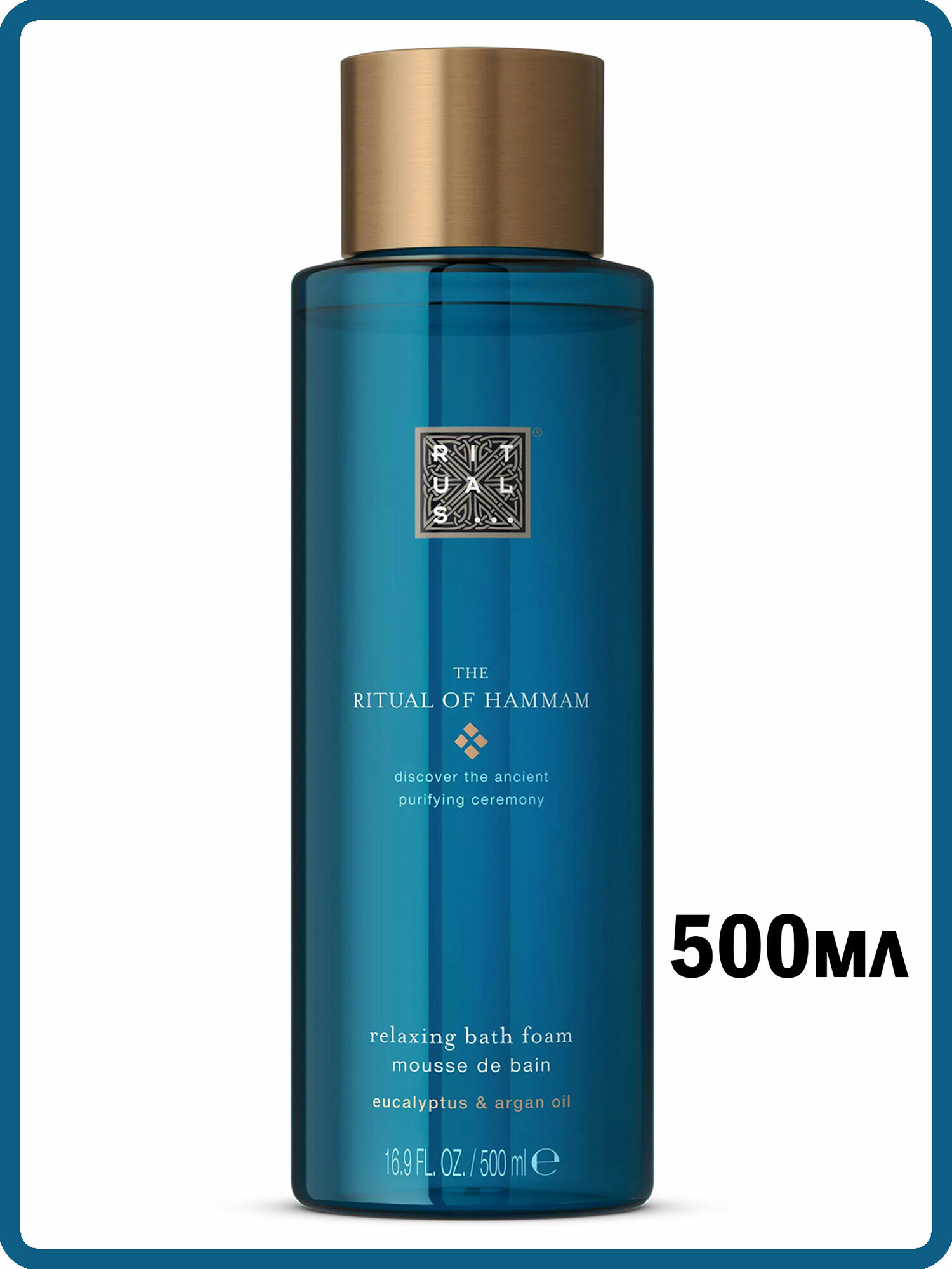 Наша пенка для ванны The Ritual of Hammam, на 90 % состоящая из природных компонентов, — идеальный способ побаловать себя и насладиться заслуженным временем в уединении. Погружаясь в тёплое, пузырящееся облако пены, позвольте бодрящему аромату эвкалипта пробудить ваши чувства и очистить разум. Масло эвкалипта, которое мы используем, тщательно отбирается, чтобы гарантировать высочайшее качество и максимальную пользу. Но вас порадует не только аромат: пенка также обогащена аргановым маслом — ценным ингредиентом, богатым незаменимыми жирными кислотами и витамином Е. Во время принятия ванны пенка питает и увлажняет кожу, делая её мягкой, гладкой и сияющей. Позвольте себе расслабляющий и оздоравливающий опыт принятия ванны, который подарит ощущение свежести и прилива сил с головы до ног.