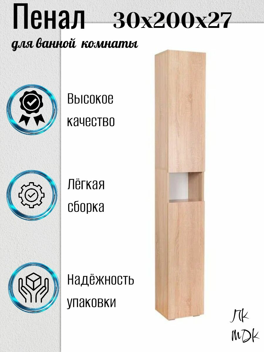 Купить Пенал для ванной комнаты 30х200х27 см Дуб сонома с доставкой по всей России. Пенал для ванной комнаты 30х200х27 см Дуб сонома: сравнение цен, характеристики, фото, актуальное наличие и цены.