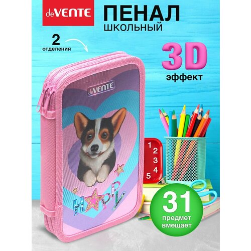Пенал предназначен для хранения канцелярских принадлежностей, таких как карандаши, ручки, ластики, точилки и другие мелочи. Основное назначение пенала – обеспечить сохранность и порядок в хранении канцелярских принадлежностей. Он защищает предметы от повреждений, загрязнений и потери. Кроме того, пенал может служить элементом декора, отражая интересы, предпочтения или увлечения своего владельца. deVENTE – бренд канцелярских товаров для школы и офиса. Все дизайны и формы разработаны дизайнерским бюро в соответствии с последними тенденциями моды и функциональности мирового канцелярского рынка. На всех стадиях проводится строгий контроль качества. Форма пенала: Прямоугольник; Материал: Текстиль, металл, картон; Пол ребенка: Девочки; Наполнение пенала: Нет; Вид пенала: Каркасный пенал; Количество отделений: 2;