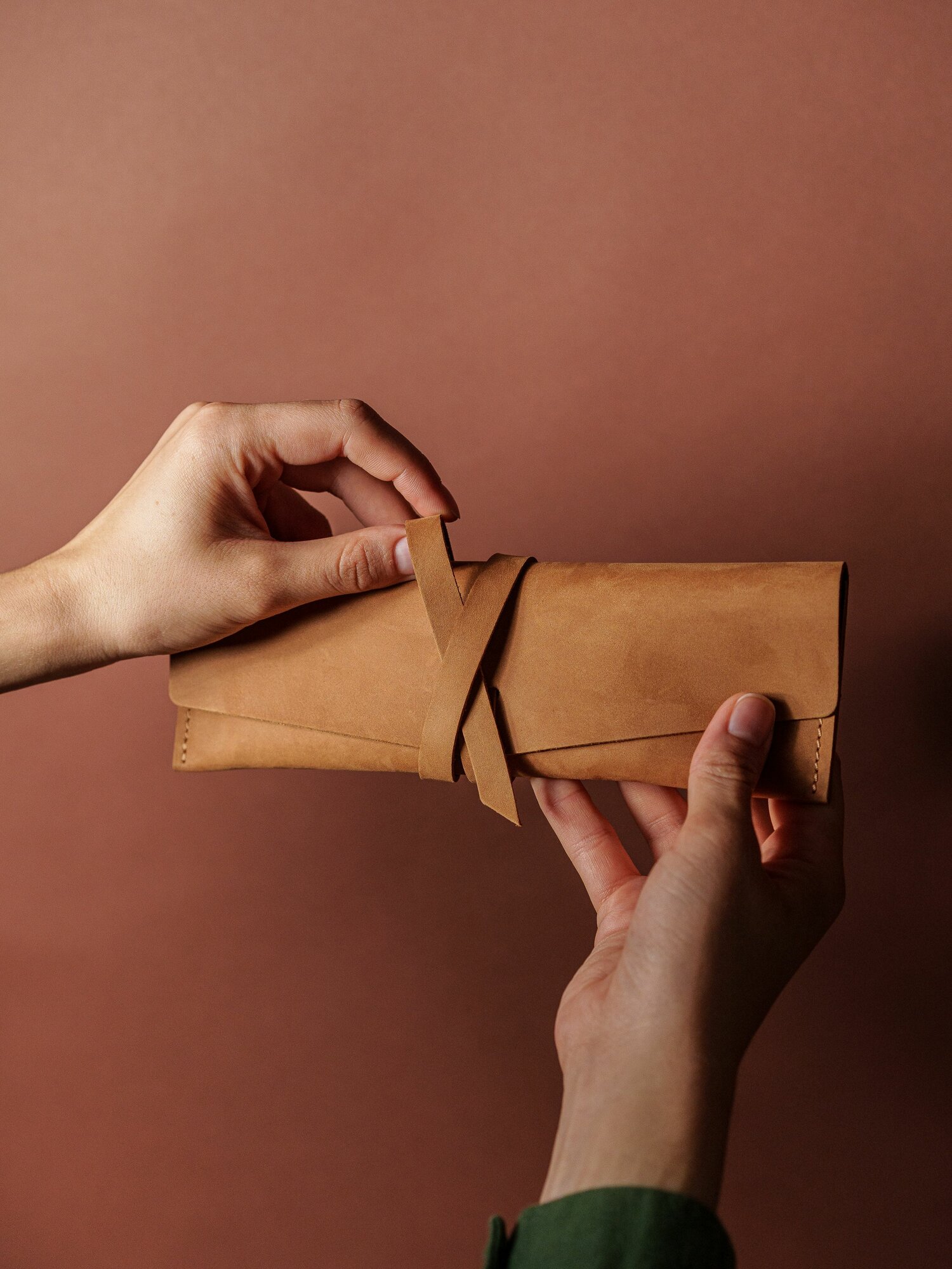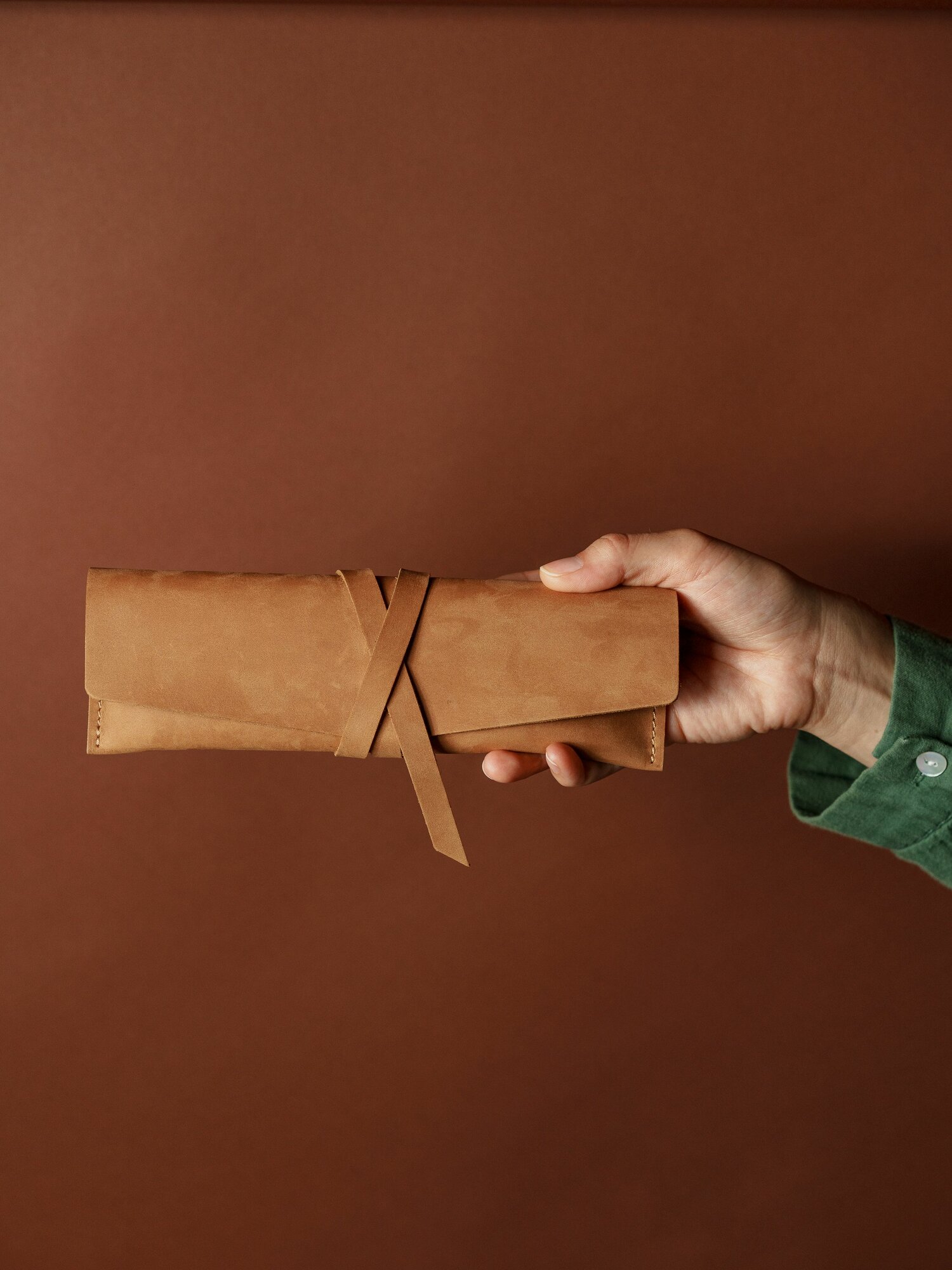Пенал из натуральной кожи / Кожаный пенал для ручек, карандашей