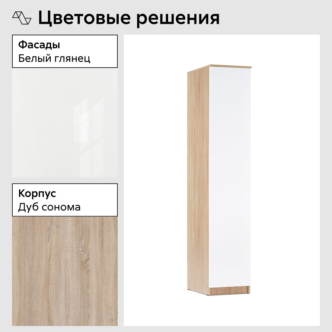 Шкаф-Пенал Челси для одежды с 2 ящиками, 45х51х180 см, Белый глянец холодный/Дуб Сонома из ЛДСП