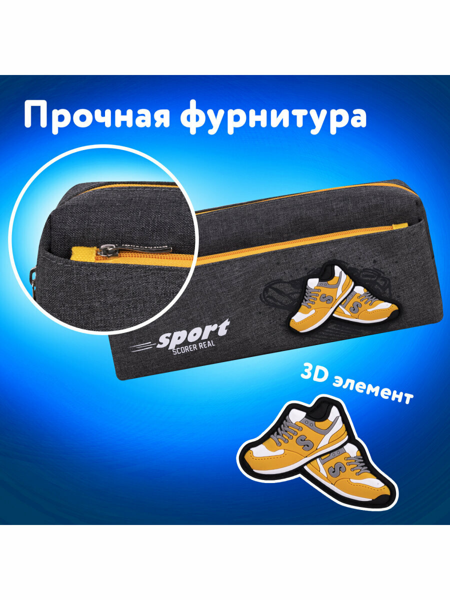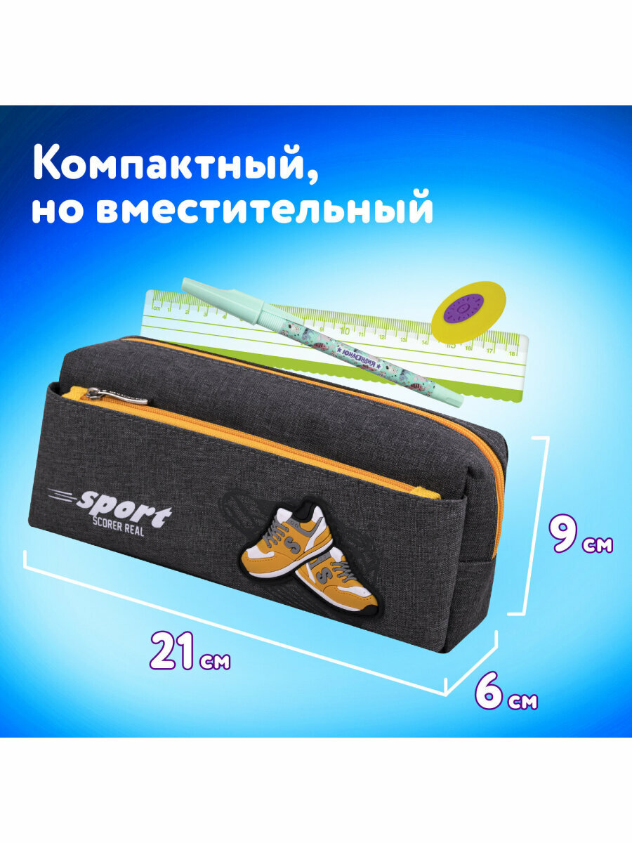 Пенал-косметичка школьный для ручек, карандашей Юнландия, 2 отделения, полиэстер, Sport Scorer, синий, 20х9х6 см, 271575: сравнение цен, характеристики, фото, актуальное наличие и цены.
