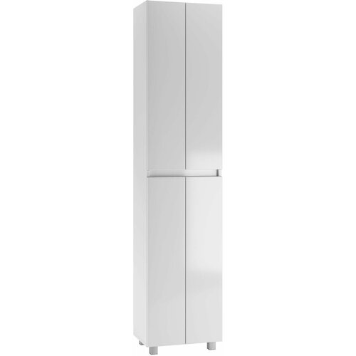 Пенал оснащен четырьмя распашными дверцами и шестью полками, что позволяет разместить все необходимые вещи. Благодаря доводчикам на петлях, дверцы закрываются плавно и бесшумно. Ножки пенала регулируются до 30 мм, что обеспечивает устойчивость и удобство использования.