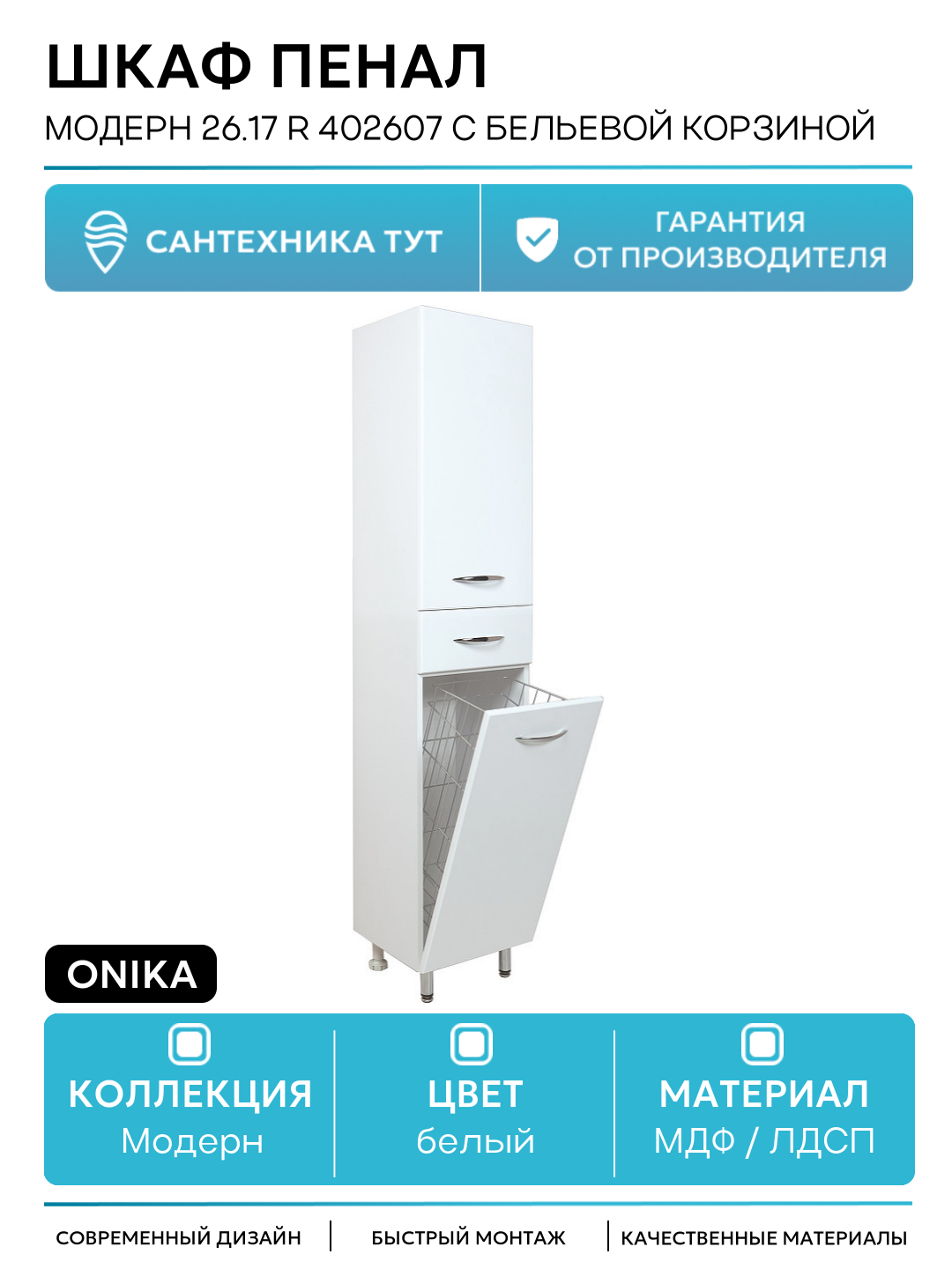 Шкаф-пенал Onika Модерн 26.17 R с бельевой корзиной: сравнение цен, характеристики, фото, актуальное наличие и цены.