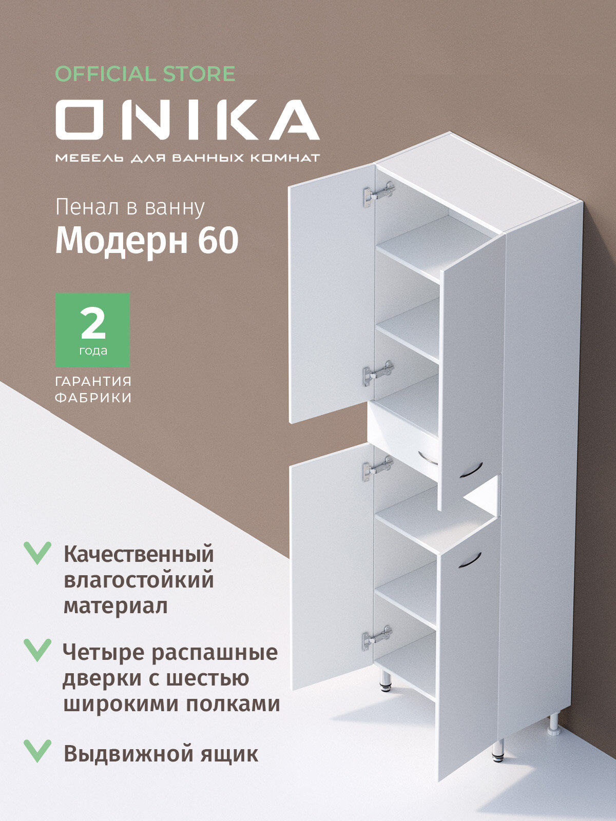 Шкаф пенал Onika - это не просто элемент интерьера в ванной, а истинный помощник в организации пространства вашего дома. Шкаф стеллаж - функциональный и стильный предмет, отлично вписывается в интерьер, создавая уют и порядок. Вы также можете использовать его как шкаф, витрину, стеллаж или буфет. Пенал для ванны универсален и найдет применение в разных комнатах вашего дома: