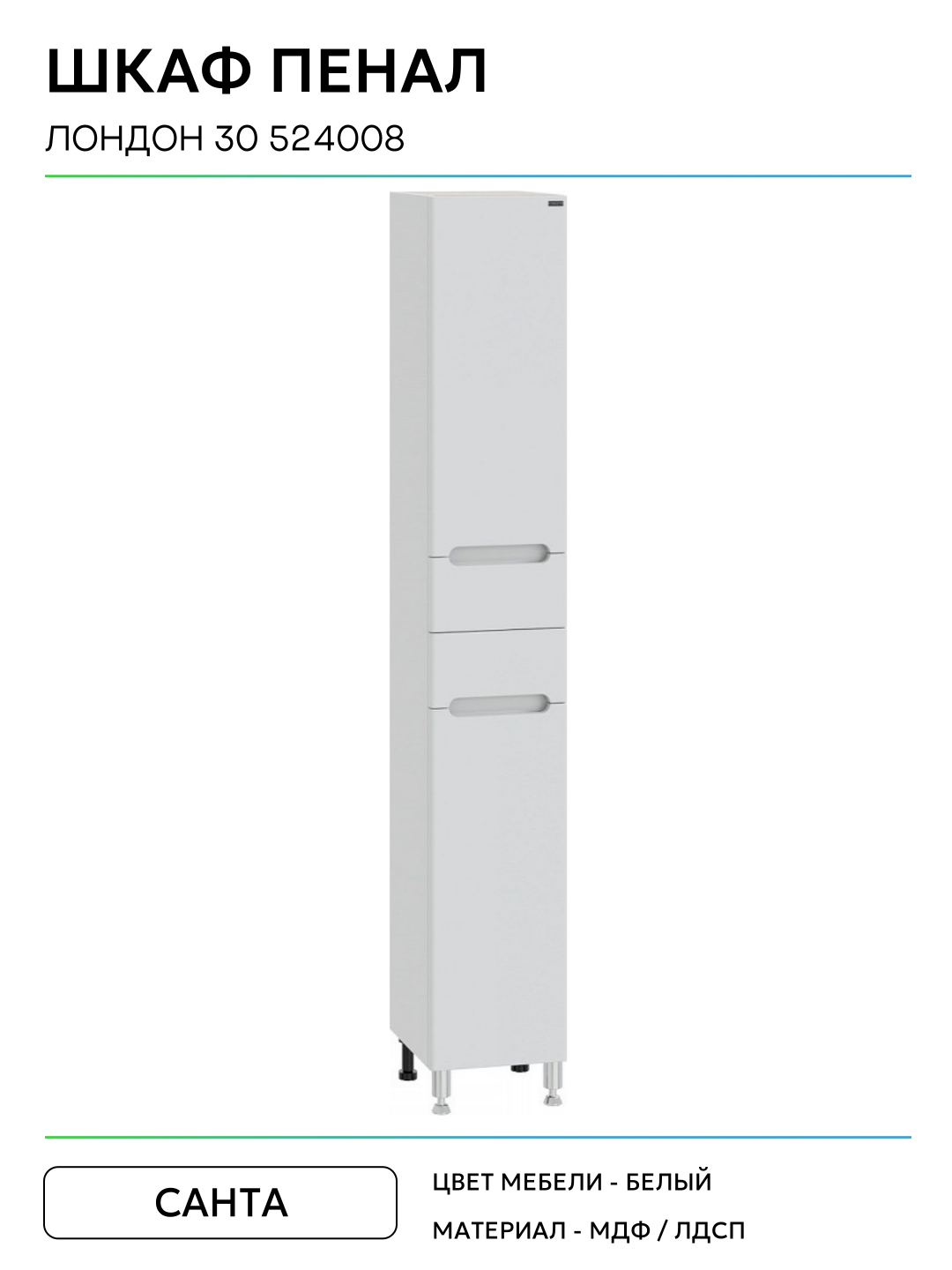 Купить Шкаф пенал СанТа Лондон 30 524008 Белый МДФ / ЛДСП белый с дверками, с ящиками с доставкой по всей России.