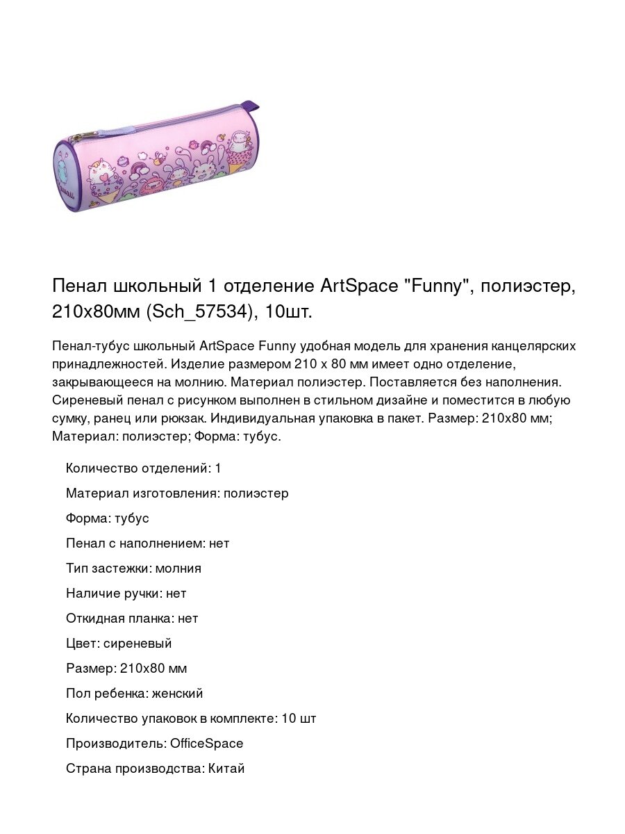 Пенал школьный 1 отделение ArtSpace «Funny», полиэстер, 210х80мм (Sch_57534), 10шт.: сравнение цен, характеристики, фото, актуальное наличие и цены.