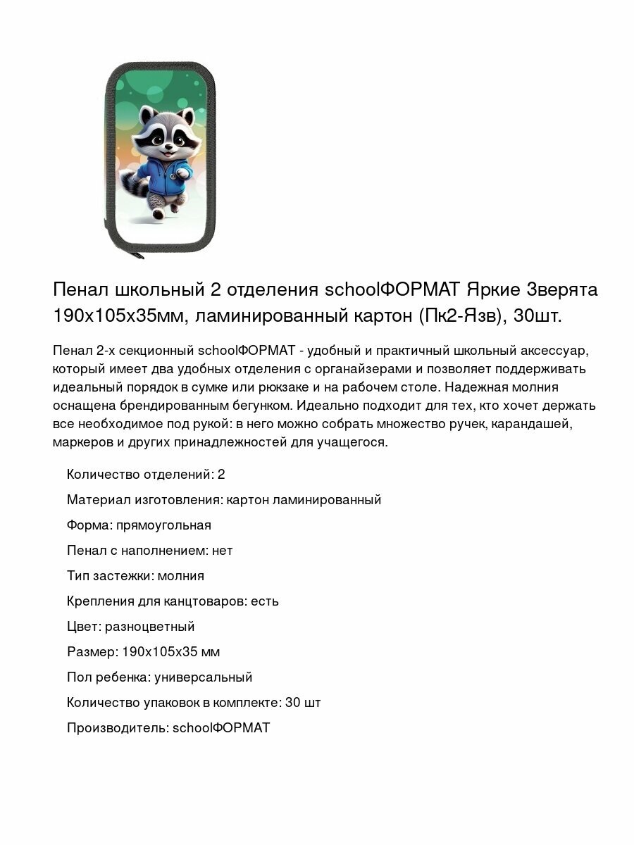 Пенал школьный 2 отделения schoolформат Яркие Зверята 190х105х35мм, ламинированный картон (Пк2-Язв), 30шт.: сравнение цен, характеристики, фото, актуальное наличие и цены.