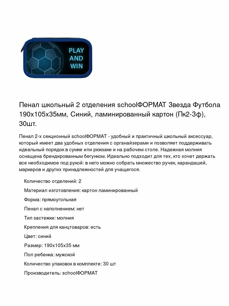 Пенал школьный 2 отделения schoolформат Звезда Футбола 190х105х35мм, Синий, ламинированный картон (Пк2-Зф), 30шт.: сравнение цен, характеристики, фото, актуальное наличие и цены.