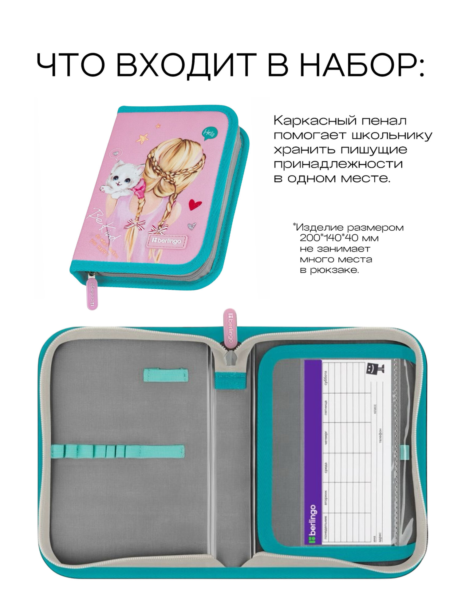 Таким образом, пенал школьный "Девочка и котик" станет отличным выбором для девочек, которые ценят комфорт, функциональность и стиль в аксессуарах.