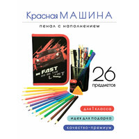 Пенал школьный «Красная Машина», 26 элементов, для мальчиков, 1 отделение, красный: сравнение цен, характеристики, фото, актуальное наличие и цены.