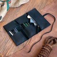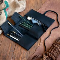 Купить Пенал — скрутка из натуральной кожи для художников. Для карандашей и ручек. Три отделения. Черный с доставкой по всей России.