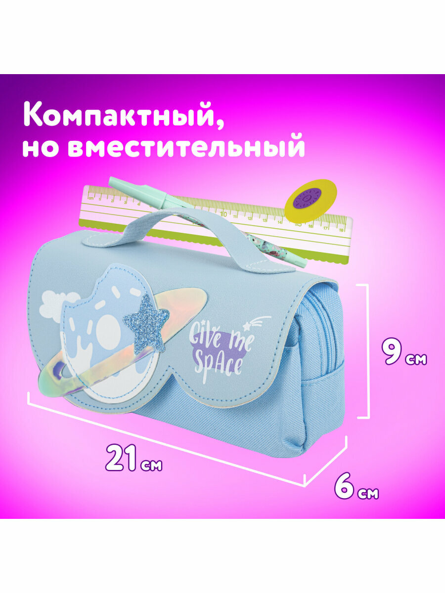 Пенал школьный для ручек, карандашей Юнландия с ручкой, 2 отделения, полиэстер, My Space, голубой, 271578: сравнение цен, характеристики, фото, актуальное наличие и цены.