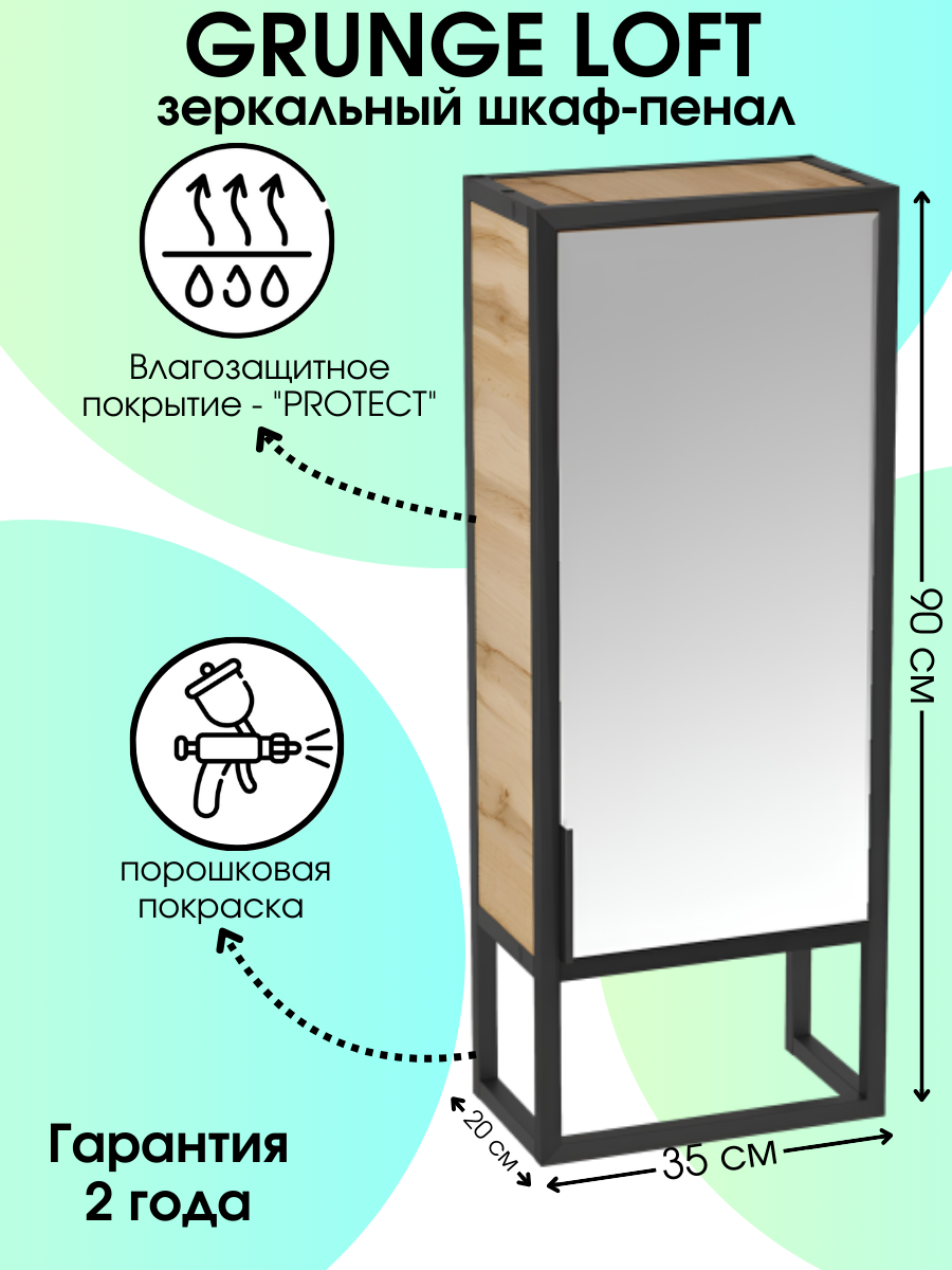 Пенал зеркальный в ванную 1Marka GRUNGE LOFT Напольный/Подвесной цвет Дуб Вотан: сравнение цен, характеристики, фото, актуальное наличие и цены.