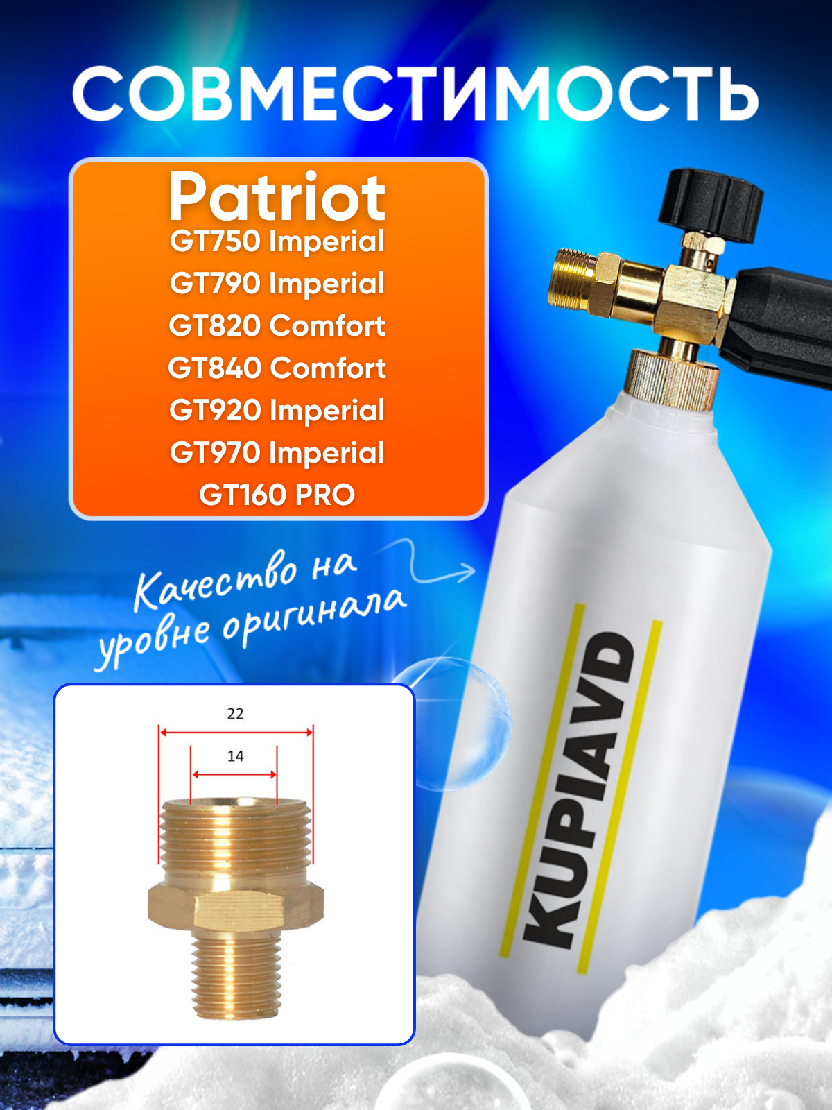 Пенная насадка (пеногенератор) , для моек высокого давления PATRIOT KUPIAVD LS3, латунь, 1 литр: сравнение цен, характеристики, фото, актуальное наличие и цены.
