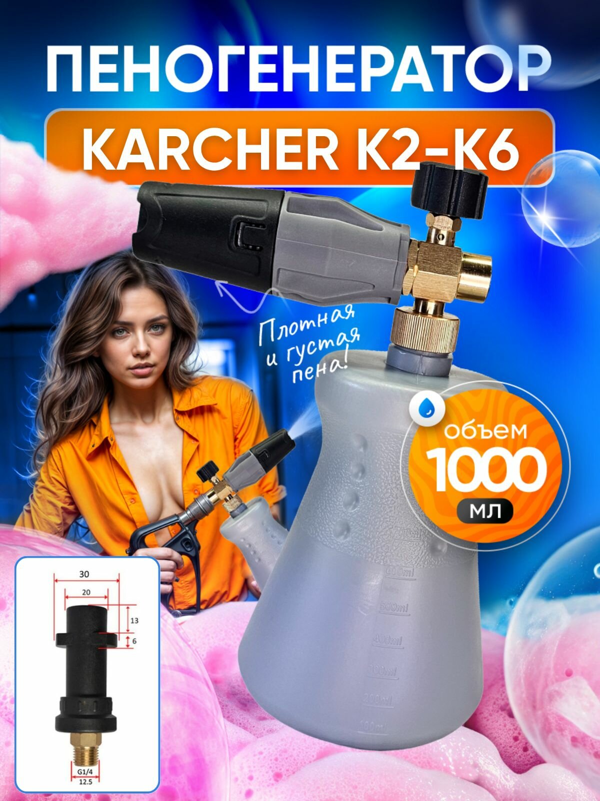 Пеногенератор для Karcher K2 K3 K4 K5 K6 K7 Пенная насадка премиум LS3-Gray: сравнение цен, характеристики, фото, актуальное наличие и цены.