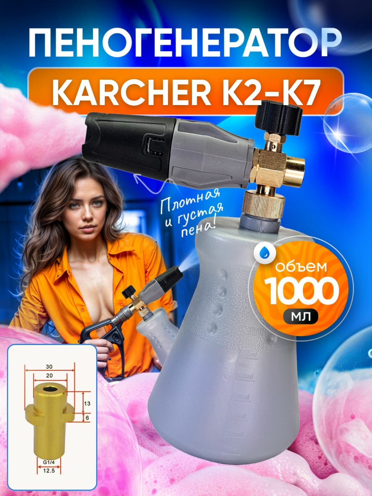 Пеногенератор для Karcher K2 K3 K4 K5 K6 K7 Пенная насадка премиум LS3-Gray латунь: сравнение цен, характеристики, фото, актуальное наличие и цены.