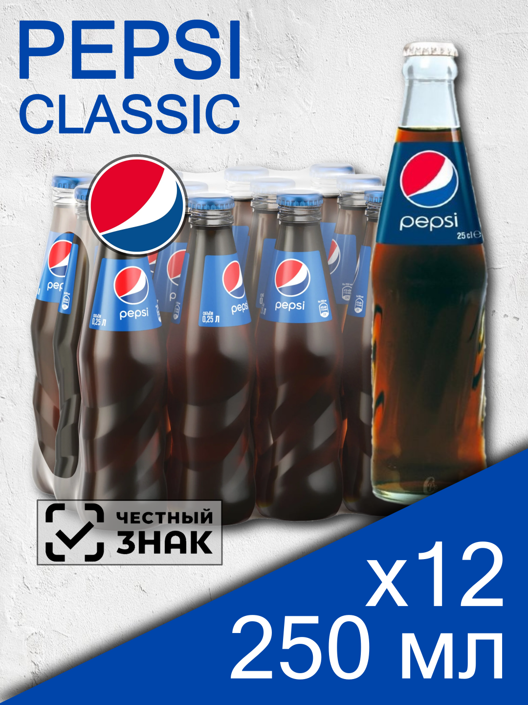 Купить Pepsi Cola, 0.25 л, 12 шт, стеклянная бутылка, (газированный напиток Пепси, стекло) с доставкой по всей России.