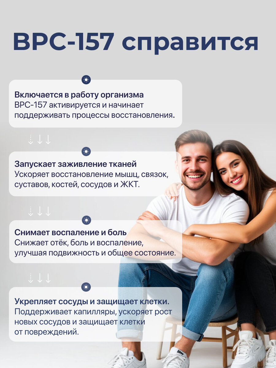 BPC-157 (Body Protection Compound-157) — это короткая цепочка из 15 аминокислот, полученная из белка, присутствующего в человеческом желудочном соке. Соединение широко известно своей способностью поддерживать восстановление различных тканей организма. Оно активно изучается благодаря выраженному воздействию на процессы регенерации, уменьшение воспалительных реакций и поддержку здоровья желудочно-кишечного тракта, сосудистой, нервной систем и опорно-двигательного аппарата.