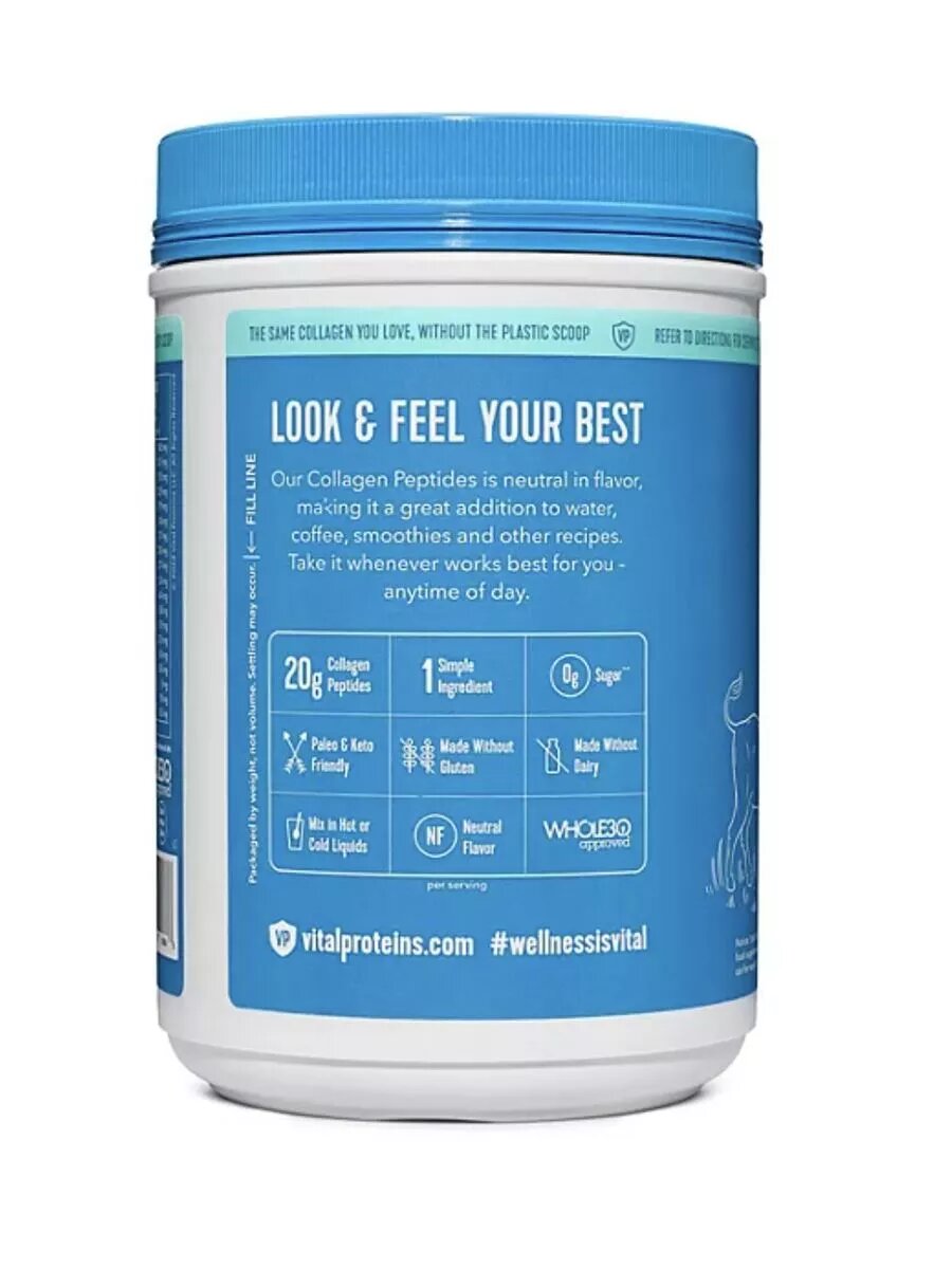 Простота в использовании: одна порция Vital Proteins Collagen Peptides Advanced в день легко усваивается и растворяется в холодных или горячих жидкостях, таких как кофе, чай и смузи.