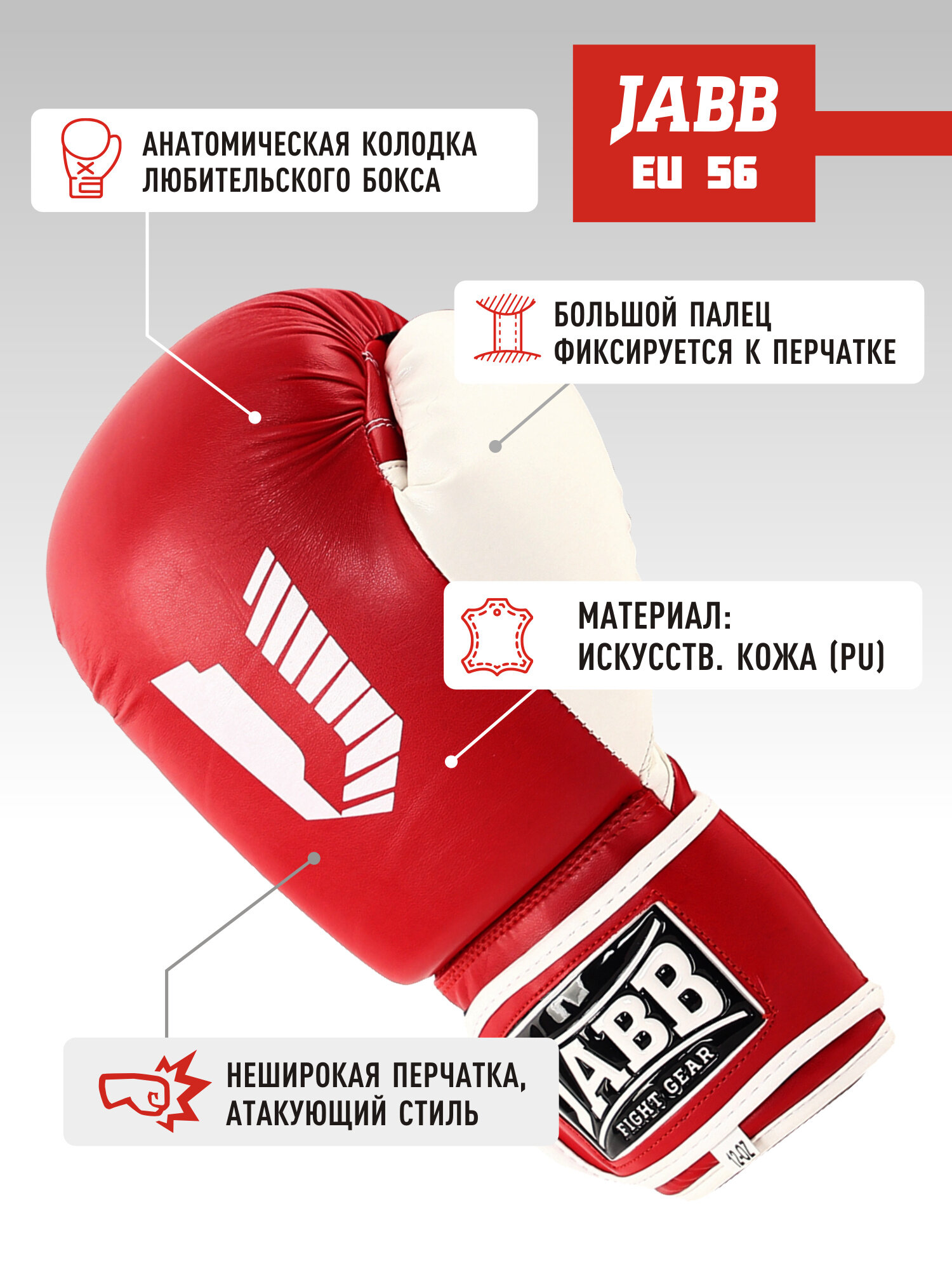 Перчатки боксерские мужские тренировочные(иск. кожа) Jabb JE-4056/Eu 56 красный/белый 12ун.: сравнение цен, характеристики, фото, актуальное наличие и цены.