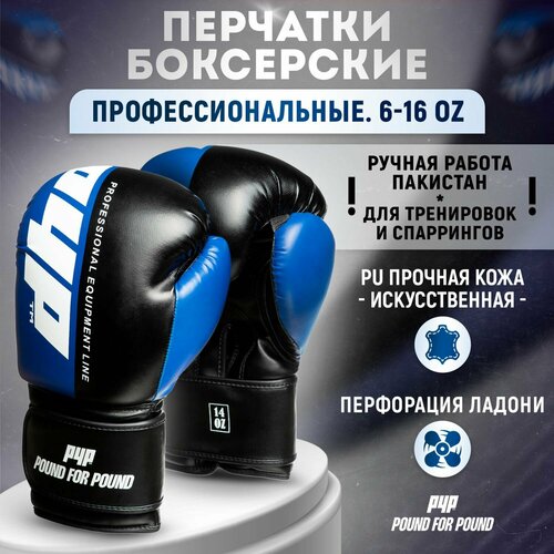Перчатки боксерские профессиональные для единоборств, синие, 10 унций