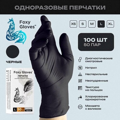 Купить Перчатки «Foxy Gloves», размер L, Чёрные, 100шт (50 пар), нитриловые, одноразовые. с доставкой по всей России. Перчатки «Foxy Gloves», размер L, Чёрные, 100шт (50 пар), нитриловые, одноразовые.: сравнение цен, характеристики, фото, актуальное наличие и цены.
