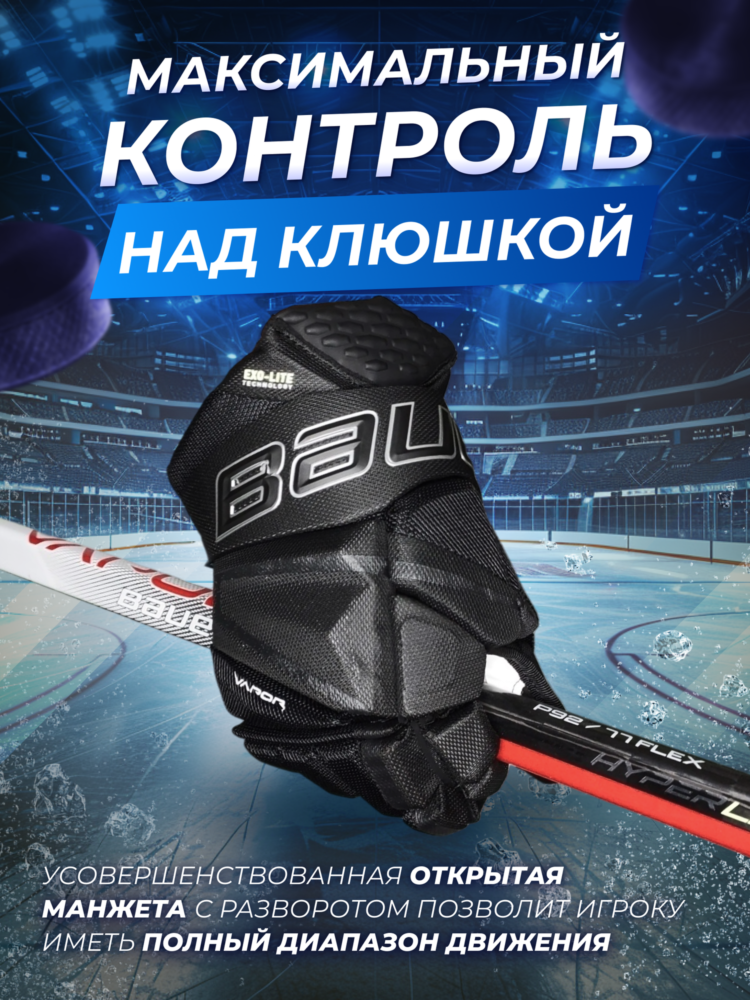 Перчатки хоккейные BAUER, анатомическая модель, защита запястий и пальцев, 10 размер: сравнение цен, характеристики, фото, актуальное наличие и цены.