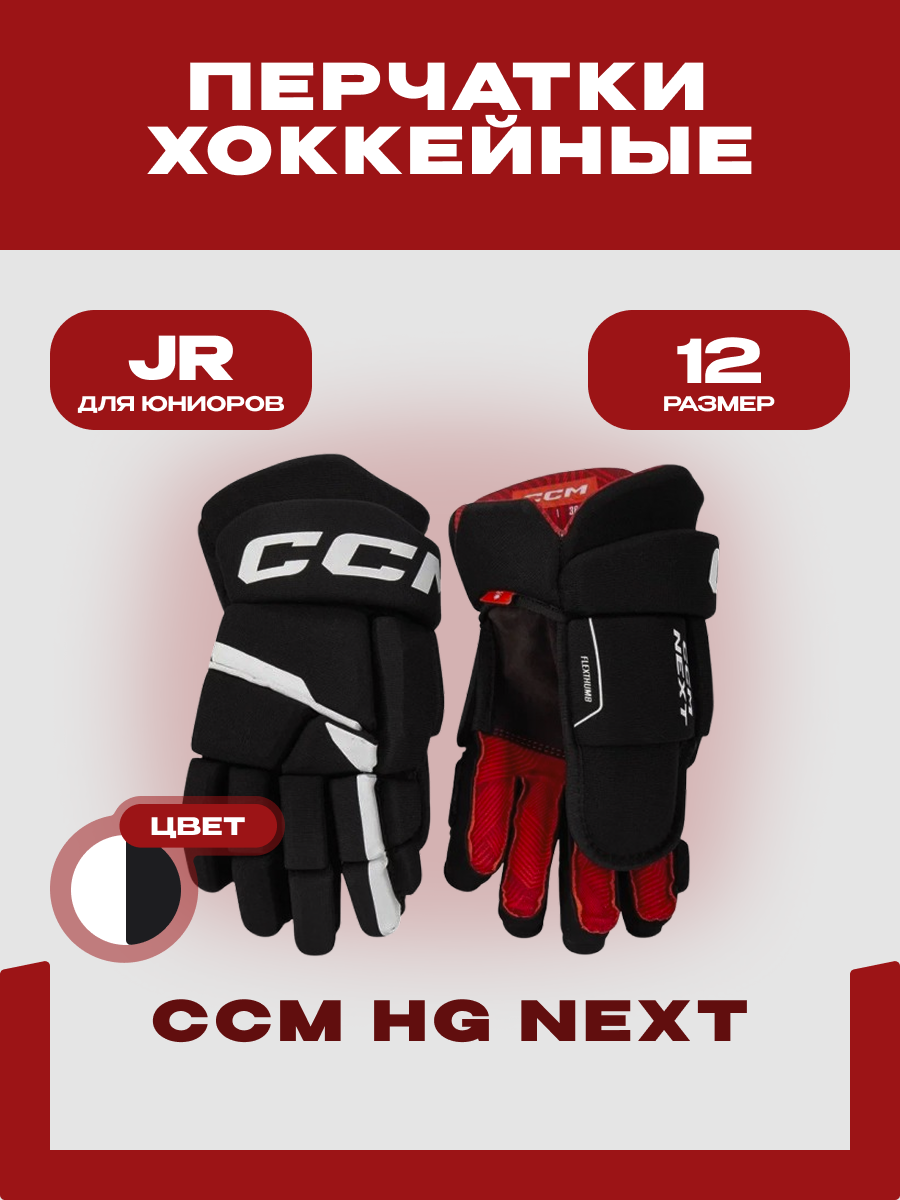 Перчатки хоккейные CCM «HG Next» JR, размер 12, для юниоров, черно-белые: сравнение цен, характеристики, фото, актуальное наличие и цены.