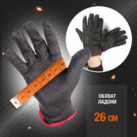 характеристики: Серия: Тип : перчатки Класс изделия : АВ Назначение : TIG сварка (аргонодуговая) / водительские / слесарные работы Материал перчаток : коровья кожа Область ладони : кожа коровы Внутренняя сторона перчаток : замша Цвет : чёрные с красной окантовкой Размер, (обхват ладони), см : 25 Длина, см : 26 Ширина, см : 11 Российский размер : 10 Европейский размер, : XL Толщина перчаток, мм : 1,1 Наличие кольцевой резинке на запястье : да Нить : специальная, прочная, синтетическая Масса пары перчаток, гр : 92 Масса одной перчатки, гр : 46 Индивидуальная упаковка : да Количество пар в мастер коробке, шт : 120 Мастер коробка, вес брутто, кг : 12 Мастер коробка, вес нетто, кг : 11 Размеры мастер коробки, мм : 260x280x850 Производитель и разработчик : , Россия Производство : Пакистан