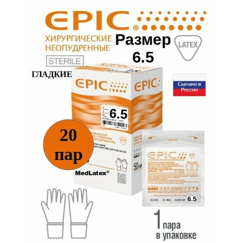 Купить Перчатки латексные хирургические стерильные неопудренные EPIC (Россия), размер 6.5, 40 штук (20 пар). с доставкой по всей России. Перчатки латексные хирургические стерильные неопудренные EPIC (Россия), размер 6.5, 40 штук (20 пар).: сравнение цен, характеристики, фото, актуальное наличие и цены.