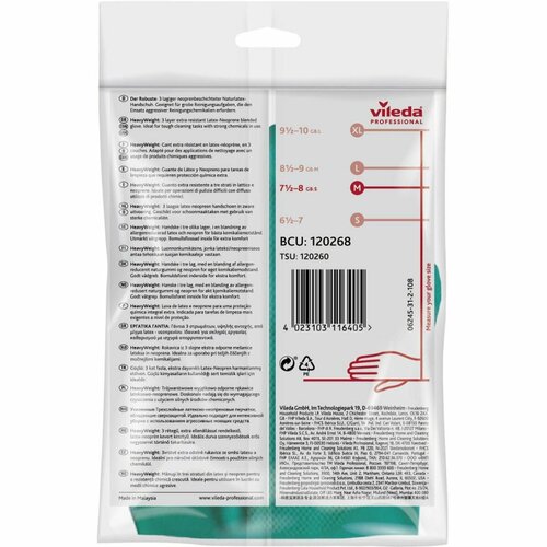Перчатки латексные Vileda HeavyWeight - это надежный и удобный инструмент для защиты рук при выполнении различных работ. Они предназначены для использования в коммерческих зданиях, учреждениях здравоохранения и чистых и контролируемых помещениях.