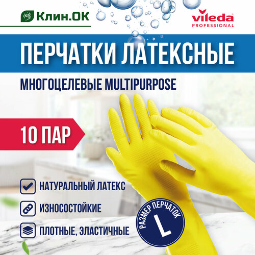 Купить Перчатки латексные Vileda MultiPurpose, желтые, размер L, 10 пар с доставкой по всей России. Перчатки латексные Vileda MultiPurpose, желтые, размер L, 10 пар: сравнение цен, характеристики, фото, актуальное наличие и цены.