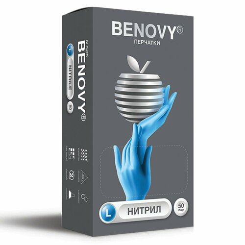 Перчатки одноразовые нитриловые смотровые Benovy Nitrile Chlorinated, размер L, голубые, 50 пар в упаковке, 10 уп.: сравнение цен, характеристики, фото, актуальное наличие и цены.
