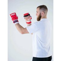 Перчатки ММА для отработки ударной техники. Двойная фиксация кисти снижает травматизм при неправильной постановке кулака. Они обеспечивают защиту и в тоже время позволяют свободно бороться. Использование износостойких высокотехнологичных материалов обеспечивает долговечность и комфорт даже во время самых интенсивных тренировок Тренировочные (гибридные) перчатки со сплошной ударной поверхностью (крабы) для смешанных единоборств. Подходят для: смешанных единоборств (MMA) боевого самбо, панкратиона, рукопашного боя и других видов единоборств. Также пододят для работы по мешкам и лапам в качестве снарядных перчаток.