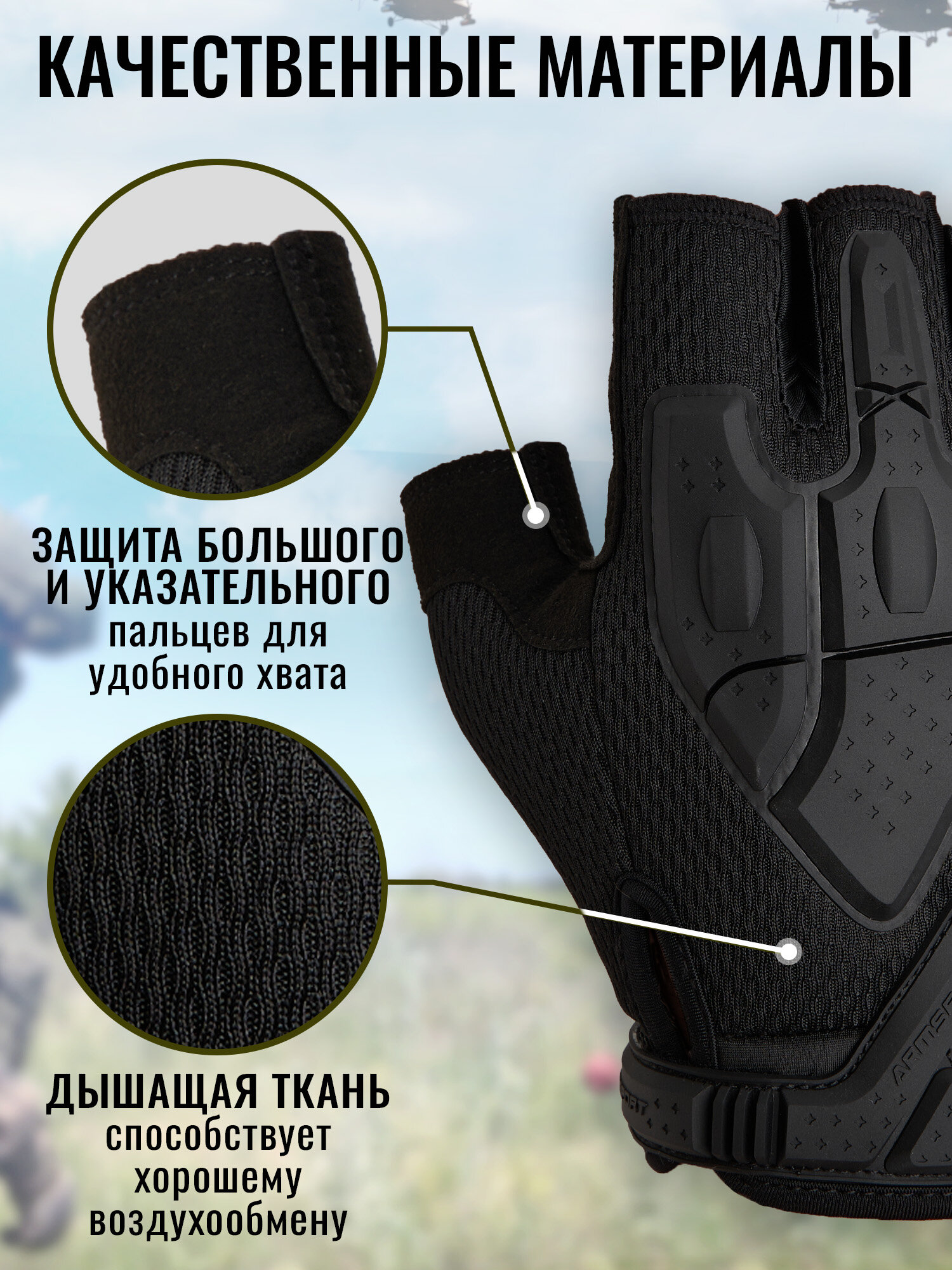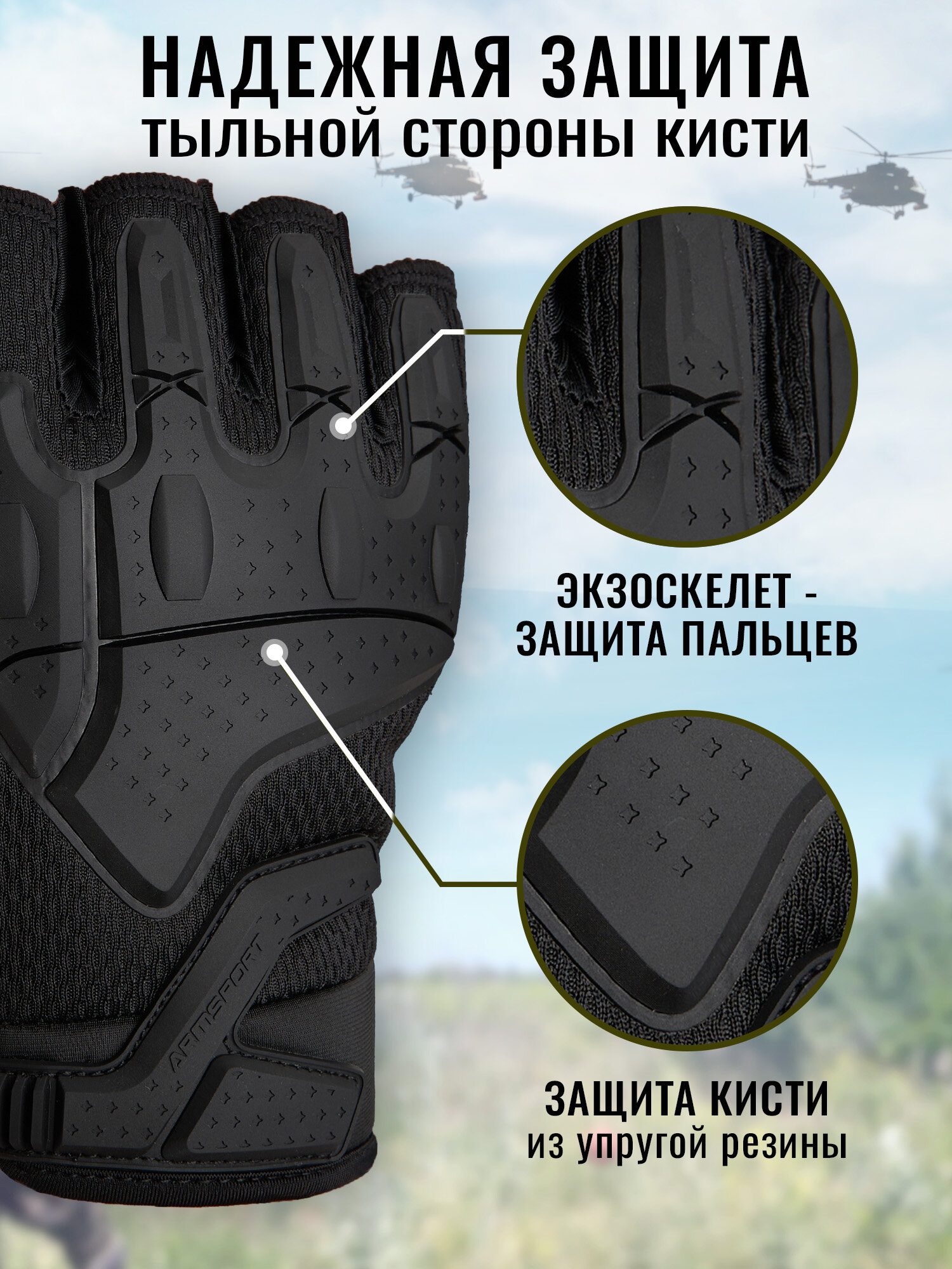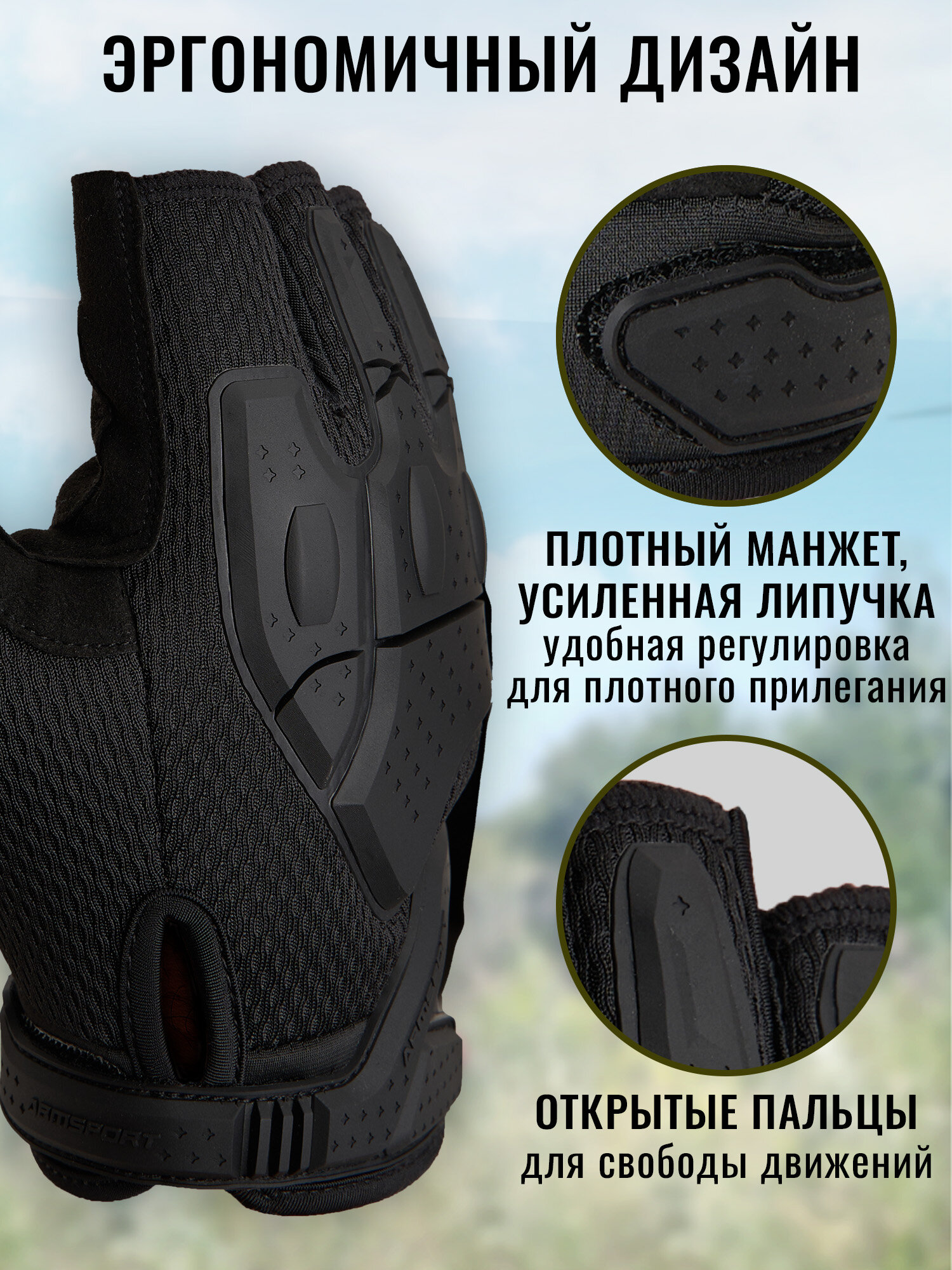 Купить Перчатки тактические мужские без пальцев Armsport, c защитной накладкой, черные XXL с доставкой по всей России.